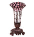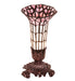 Inspired by Tiffany's famous Pond Lily design from the early 1900s... This mini lamp features a stunning Pink and White stained glass shade created using the famous Meyda Tiffany copperfoil construction process. The Pond Lily shade is embraced by an elegant cast base that is finished by hand in Mahogany Bronze. The Pond Lily Table Lamp is featured in our American designed, handcrafted Stained Glass Lighting Collection. UL and cUL listed for dry locations. Each shade is a unique work of art with color variations based on natural ingredients inherent in the glass. Contact us if color matching is critical when ordering multiple items.