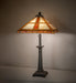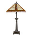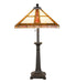 This striking Mission-style buffet lamp features a geometric-style shade with straight line designs in Golden Yellow and Beige art glass bordered with a handsome blend of Multicolored grid borders featuring Blue/Green, Red, and Amber. It is created with the famous Meyda Tiffany copperfoil construction. The lamp is complemented with a table base finished in Mahogany Bronze and features a two-pull chain on/off capabilities. The Prairie Straw Buffet Lamp is included in our American-designed, handcrafted Mission Lighting Collection. UL and cUL listed for dry locations. Each shade is a unique work of art with color variations based on natural ingredients inherent in the glass.233939