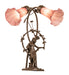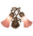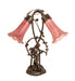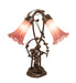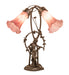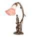 Inspired by Tiffany's famous Pond Lily design from the early 1900s... This table lamp features two stunning shades mouth blown with Pink art glass. The Pond Lily shades are embraced by an elegant Cast Bronze Base featuring a girl under a trellis and finished in a rich Mahogany patina. The Pond Lily Table Lamp is featured in our American designed, handcrafted Favrile Lighting Collection. UL and cUL listed for dry locations. Each shade is a unique work of art with color variations based on natural ingredients inherent in the glass. Contact us if color matching is critical when ordering multiple items.