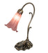 Inspired by the famous Tiffany design from the early 1900s... This mini lamp features a stunning Lavender art glass shade that is embraced by an elegant cast base finished by hand in Antique Brass. The Pond Lily Mini Lamp is included in our American designed, handcrafted Favrile Glass Lighting Collection. UL and cUL listed for dry locations. Each shade is a unique work of art with color variations based on natural ingredients inherent in the glass. Contact us if color matching is critical when ordering multiple items.