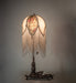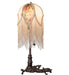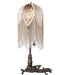 Natural forms and fabric come to light with this beautiful Fabric Tulip table lamp. Soft Ivory Pink and Blue Tulip-designed, damask-styled fabric edged in long strands of Glass Beaded Fringe is featured across a gracefully curving form. The colorful fabric floral petal shade contrasted with solid Ivory panels is enhanced with a Mahogany Bronze finished base that doubles as a vanity tray. The lamp is perfect for placement in picture windows and on tables in residential, hospitality, and commercial settings throughout the US, including Reno, Nevada, to Helena, Montana, to Everett, Washington. The Fabric & Fringe Lighted Vanity Tray is included in our American-designed, handcrafted Fabric & Fringe Collection. UL and cUL listed for dry and damp locations, however, we do not recommend placing it in spaces that experience a large amount of moisture due to the fabric shade.