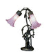 Inspired by Tiffany's famous Pond Lily design from the early 1900s... This table lamp is created with stunning shades mouth blown of Pink art glass. The two shades are embraced by an elegant Cast Bronze Base featuring a girl under a trellis and finished in a rich Mahogany patina. The Pond Lily Table Lamp is featured in our American designed, handcrafted Favrile Lighting Collection. UL and cUL listed for dry locations. Each shade is a unique work of art with color variations based on natural ingredients inherent in the glass. Contact us if color matching is critical when ordering multiple items.