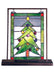 Celebrate the season with this charming Pine Green Christmas tree on a Snow White ground. 49 pieces of hand cut stained glass and 10 colorful glass jewels are used to make this festive mini window. Handcrafted utilizing the copperfoil construction process and stained art glass encased in a solid brass frame, each window hangs perfectly in it's own brass tabletop display.