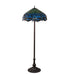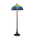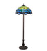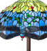 This stunning floor lamp features a most beloved stained glass Dragonfly design modeled after the original hanging head dragonfly from Tiffany Studios. Diving Blue Dragonflies with glowing Red jeweled eyes and delicate metal filigree wings circle over hand cut and copper foiled pieces of Pond Green and Lakeside Blue Ripple glass that represent the water. Emerald Green and Ruby Red jewels accent the background. This lovely shade is created using the famous Meyda Tiffany copperfoil construction. The floor base is finished in Mahogany Bronze. Each shade is a unique work of art with color variations based on natural ingredients inherent in the glass. Contact us if color matching is critical when ordering multiple items.