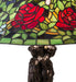 The most beloved of all floral beauties. The Rosebush is beautifully represented in this stunning reproduction of a Tiffany Studio Classic. Petal Pink, Romantic Red, Beautiful Blue and Plum Passion art glass Roses ramble on a maze of Garden Green leaves. The shade is created using the famous Meyda Tiffany copperfoil construction. The delicate domed stained glass shade is paired with a Mahogany Bronze finished base. UL and cUL listed for dry locations.