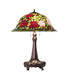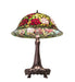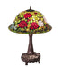 The most beloved of all floral beauties. The Rosebush is beautifully represented in this stunning reproduction of a Tiffany Studio Classic. Petal Pink, Romantic Red and Beautiful Blue art glass Roses ramble on a maze of Garden Green leaves. The shade is created using the famous Meyda Tiffany copperfoil construction. The delicate domed stained glass shade is paired with a Mahogany Bronze finished base. UL and cUL listed for dry locations.