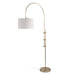 The juxtaposition of a metallic, adjustable base with a fabric shade gives this arc floor lamp a modern aestheticââ¬âseamlessly fusing fashion and function.