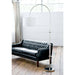 The juxtaposition of a metallic, adjustable base with a fabric shade gives this arc floor lamp a modern aestheticââ¬âseamlessly fusing fashion and function.