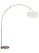 The Sawyer floor lamp in burnished brass by kate spade New York is inspired by whimsical geometry and playful lines. Sawyer has a striking silhouette with graphically taped shades. This is a classic modern arch floor lamp form dressed up with graphically taped double tiered wide shades. Use this fixture in any classic arch floor lamp scenarioââ¬âa statement over a sofa or dining nook.