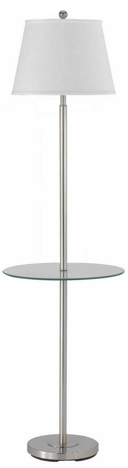 150W 3Way Andros Fl Lp W/Glass TrayDetails:Product Type: Floor/Accent TableFinish: Brushed SteelShade: Light BrownRooms: Bedroom, Living Room, Offi...