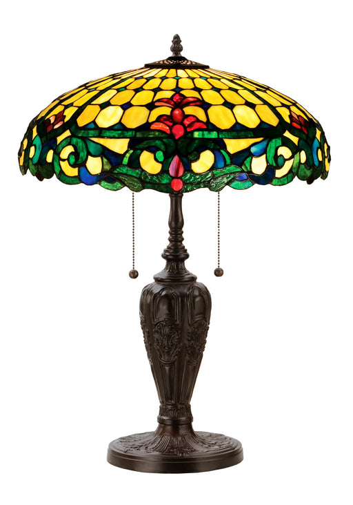 View full detailsMeyda Tiffany 31156 Two Light Table Lamp, Beige Burgundy Blue/Green Green