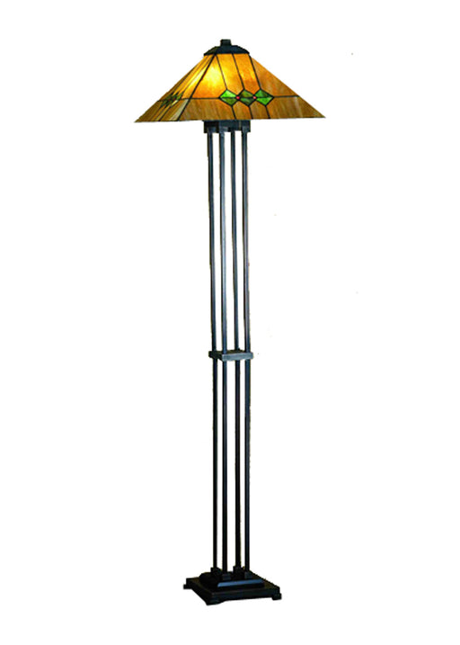 In the tradition of the Prairie School, organic objects were interpreted into geometric forms. In this floor lamp, Meyda Tiffany uses colorful inte...