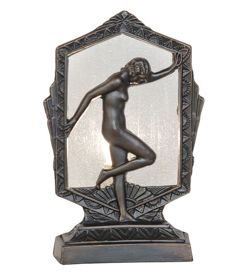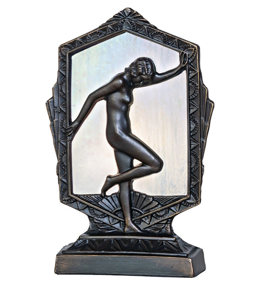 This Art Deco-styled accent lamp features a graceful posing lady. This elegant metal statuette, finished in Antique Brass, is complemented by a stu...