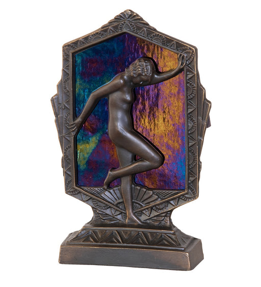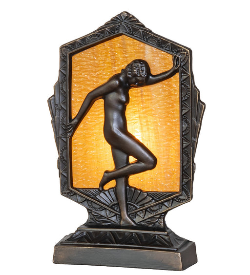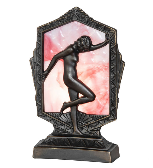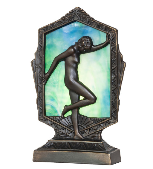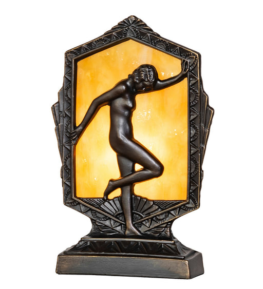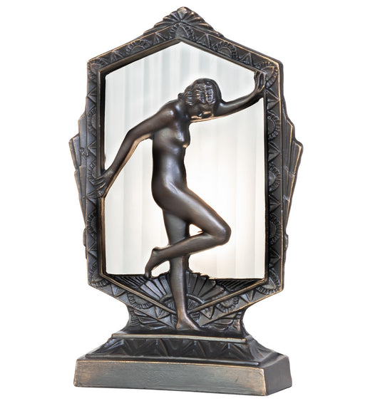 A graceful posing lady is highlighted on this Deco-styled accent lamp. The elegant metal statuette is finished in Antique Brass and complemented wi...