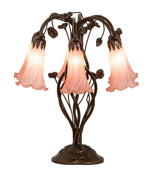 Recreating the popular Tiffany design from the early 1900s... This table lamp offers an attractive, delicate design featuring three stunning Pink a...