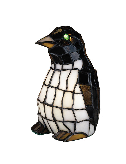 This adorable Penguin accent lamp is created from Ebony and Winter White stained art glass with eyes that are made of glistening glass jewels.Detai...