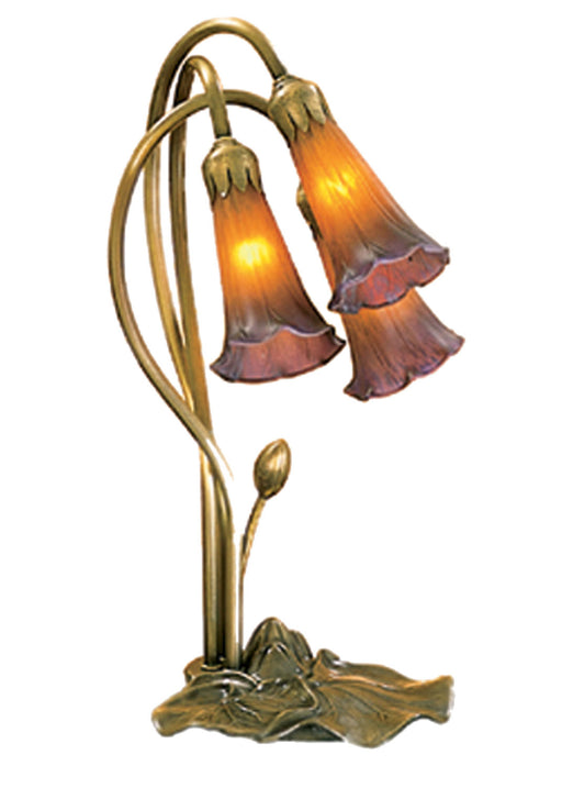 Inspired by Tiffany's famous Pond Lily design from the early 1900s... This table lamp is created with three mouth blown shades featuring Amber art ...