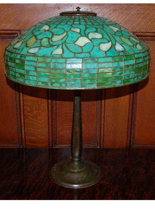 This stained glass lamp, created using Louis Comfort Tiffany's world famous copperfoil construction process, is a traditional depiction of Nouveau ...