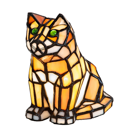 This Amber and Orange stained glass Kitten sculpture features eyes made of glistening Green glass jewels. The Tiffany-style lighted sculpture is li...