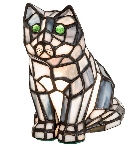 This lighted Gray stained art glass Kitten sculpture with eyes that are made of glistening glass jewels is like a precious pet that will charm its ...
