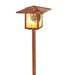 Pine Cone laden branches accent this handsome American Craftsman lantern landscape fixture. The fixture, handcrafted in the USA by Meyda artisans, has a Vintage Copper finish and has Iridized Beige glass panels.