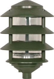 Illuminating your garden and flower beds has never been easier with the SATCO NUVO pagoda-style light. The small hood exterior light is finished in green, to blend in seamlessly with your florals and shrubs. Idyllic for brightening the landscape of your home with an inviting and glowing ambiance.