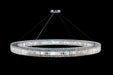 The Rondelle Collection features timeless single and multiple tier polished chrome round pendants of Firenze crystal baguette and squares.