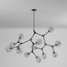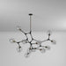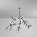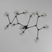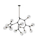 From Designer Jo Alcorn, the "Organic" collection features a black frame with vintage brass accents. This collection features a clear circular dimple glass. The arms can be adjusted to any configuration desired. Comes with extra rods for height adjustment and a hangstraight for sloped ceilings.