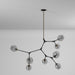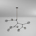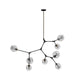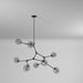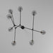 From Designer Jo Alcorn, the "Organic" collection features a black frame with vintage brass accents. This collection features a clear circular dimple glass. The arms can be adjusted to any configuration desired. Comes with extra rods for height adjustment and a hangstraight for sloped ceilings.