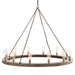 Hanging by a purposely rusted chain this gray wood ring and its 12 lights make a great statement when hanging over a large round dining table or kitchen island. The Edison bulbs in the photo reinforce the rustic industrial feel. Additional chain available CHN-987. Damp rated can be used in covered outdoor areas.