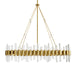 Antique brass and clear acrylic are the perfect pair on this oval-frame steel chandelier. Forty pillars of clear acrylic create a stunning design and add extra shine. Similar style available in a small (89094) and large round shape (89055) and as a sconce (49057). Additional pipe available (PIPE-101). Approved for use in covered outdoor areas.