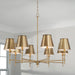 A refresh to the classic silhouette, the Whitney Large Chandelier brings elevated glamour to traditional style. The Aged Brass metal shades with white interior create a modern look, while the designer details add intrigue.