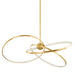 Jewelry-inspired and celestial, this modern, airy design features three LED rings, with a Vintage Brass exterior and a Matte White Acrylic interior, orbiting a large center sphere. Alula's dramatic, dynamic silhouette adds both energy and a quiet peacefulness to a space.