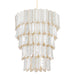 Capturing the dynamism of its namesake city, Cartagena cuts an impressive figure with its shimmering layers and exquisite materiality. Tiers of lustrous leaf-shaped panels crafted from fine Capiz Shell exude drama and decadence. Vintage Gold Leaf heightens the glamor of this statement piece, which comes as a sconce or chandelier in three sizes.