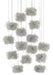 The Birds Nest Round 15-Light Multi-Drop Pendant is an effervescent beaded pendant that looks like luminous nests. Rather than twigs, the shades are made up of whorls of clear beads strung along pieces of wire. It takes many hours for our artisans to create these shades that look so whimsical. The canopy of this piece is luminous in a painted silver finish. This fixture is among Currey & Company's multi-drop pendant collection, which includes multiple configurations.