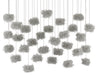 The Birds Nest 30-Light Multi-Drop Pendant is an effervescent beaded pendant that looks like luminous nests. Rather than twigs, the shades are made up of whorls of clear beads strung along pieces of wire. It takes many hours for our artisans to create these shades that look so whimsical. The canopy of this piece is luminous in a painted silver finish. This fixture is among Currey & Company's multi-drop pendant collection, which includes multiple configurations.