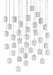 The Dove 36-Light Multi-Drop Pendant has pleated shades made of pale ceramic that diffuse the light wafting through them. The indentions and ridges on the shades of the white pendant bring a textural feel to this luminary even though it is monochromatic. The canopy of this piece is luminous in a painted silver finish. The canopy of this piece is luminous in a painted silver finish. This fixture is among Currey & Company's multi-drop pendant collection, which includes multiple configurations.