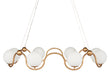 The Equilibrium Chandelier is a gold chandelier with lovely glowing globes inspired by Milano aesthetics. The way the undulant frame swirls around the opaque white glass globes allows the composition to maintain its balance perfectly. The antique brass finish on the wrought iron frame is a warm contrast. A design that is still di rigore in the great opera houses in Italy's most fashionable city of Milan, it brings with it a seriously refined aesthetic.