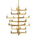 Clean articulated arms with resolute geometries make the big, bold Andre Medium Chandelier a powerful statement that can easily swing from contemporary to transitional styles, and many in between. Made of wrought iron in a brass finish, the gold chandelier will take on other personalities when the shapes of the bulbs are changed. Tall foyers and great rooms with high ceilings are perfect spots for this luminous modern light fixture with 28 lights.