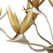Made of steel, the Paradiso Chandelier has a lyrical shape inspired by the Strelitzia reginae, more commonly known as the Bird of Paradise plant. The limbs that arc up and away from a central cone are in a contemporary silver leaf finish, while the cone and blossoms that flow around the light bulbs are in a contemporary gold leaf finish. This silver and gold chandelier is an example of how nature-inspired design elements are driving the biophilic movement.