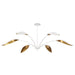 As if it has sprouted three pairs of lily petals that arc delicately away from each other, the Yuriko Chandelier is a crisp white creation until the interiors of those petals are glimpsed, as they are finished in a contemporary gold leaf that contrasts the gesso white beautifully. The brilliance of this design by Tom Caldwell doesn't stop there: it continues in the pare-down quality of the stems from which the shades extend, which grow thinner as they move toward the petals, the circular details on these, which create an elemental knottiness like that of bamboo, and the elegant shape of the small cup from which they branch out.