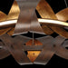 Beautiful hand forged, two-toned bronze ribbons coil around a band of LED lighting. The ribbons showcase a gold foil application in the inner sides that reflect a warm glow.