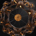 Beautiful hand forged, two-toned bronze ribbons coil around a band of LED lighting. The ribbons showcase a gold foil application in the inner sides that reflect a warm glow.