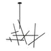 Minimalist rendition of intersecting paths, the simple rods of LED crisscross at varied points. The structure appears light and animated creating dynamic visual interest.