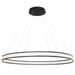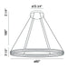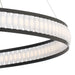 Multiple white acrylic pieces form rings of LED light accented by black trim. The small detail in the halos add dimension and texture to the otherwise simple form. The dark edges create a slight rustic appearance to the overall design adding character and a soft industrial quality. Varied sizing offers 1-tier or 3-tier options