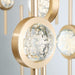Various sized anodized rods suspend vertically in black or gold finishes. Each rod is furnished with a clear seeded glass orb that perfectly sits within an anodized ring.