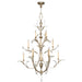 Chandelier in warm muted silver leaf finish. Features beveled crystal accents.