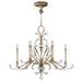 Oblong chandelier in a warm muted silver leaf finish featuring beveled crystal accents.