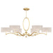 Chandelier in a gold leaf finish with champagne fabric shades.
