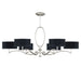 Chandelier in a silver leaf finish featuring black fabric outer shell shades with a silver metallic inner lining.